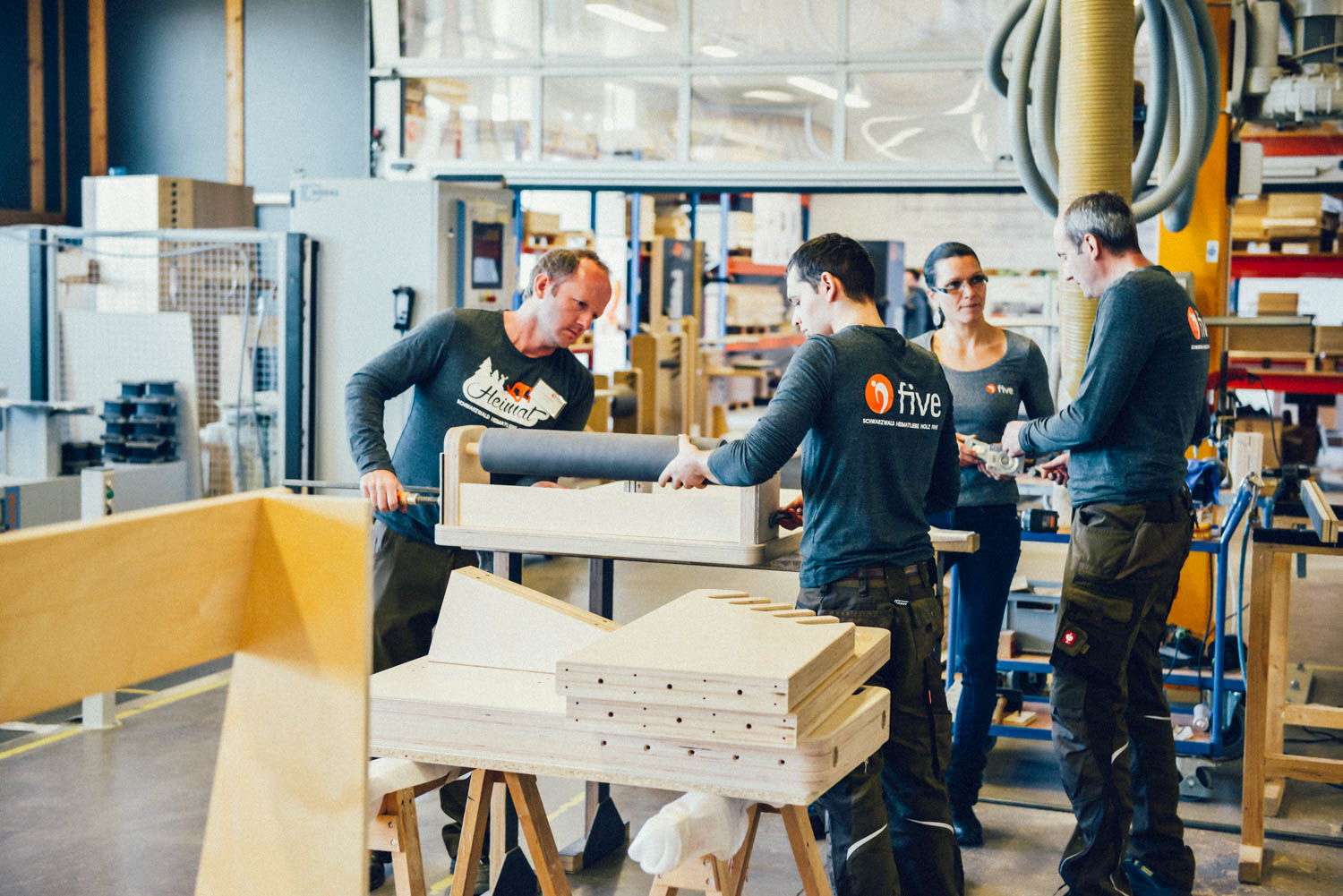 Die Produktion der five-Geräte in unserer Schreinerei mitten im Schwarzwald ist für uns eine echte Herzensangelegenheit. Hier werden bis heute alle five-Geräte von unserem Schreiner-Team hergestellt. Jedes Gerät durchläuft dutzende Produktionsschritte – davon viele in Handarbeit - bis es zur Auslieferung bereit ist.